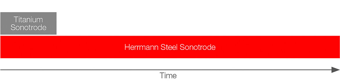 The Herrmann hardened steel sonotrode is up to 5 times more robust than standard titanium sonotrodes. If required, it is also possible to rework the cutting edge – this extends the service life even more.